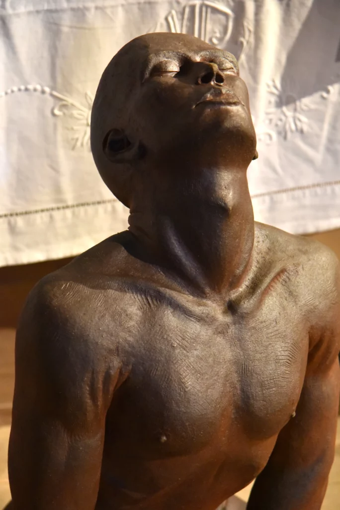 Céramiste sculpteur, je façonne des personnages en argile que je cuis dans mon four à bois. Ce sont des modelages, à taille humaine, qui confrontent le spectateur à une image en miroir. Un face à face intime qui peut dérouter ou interroger sur des questions sociétales…