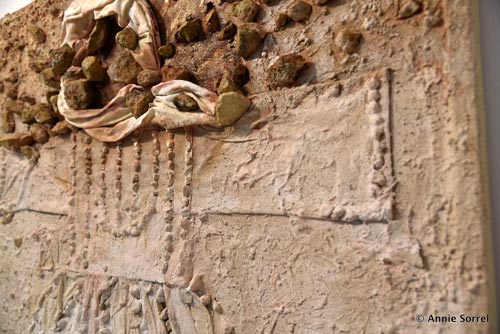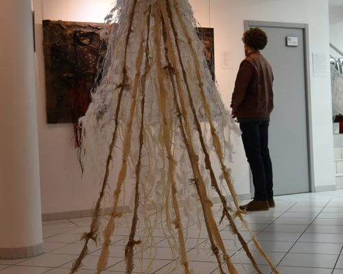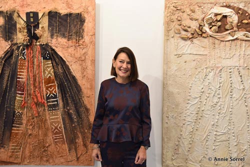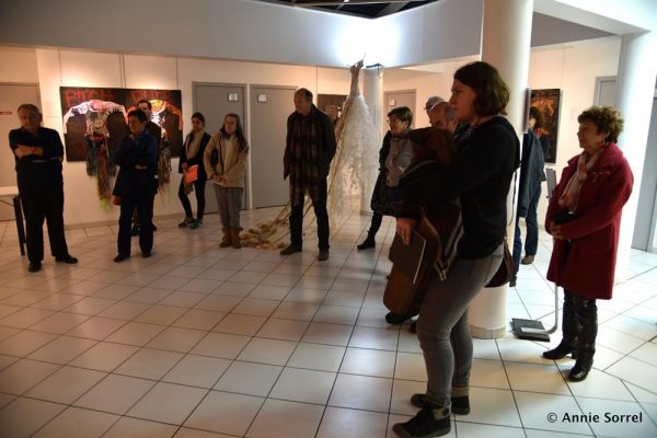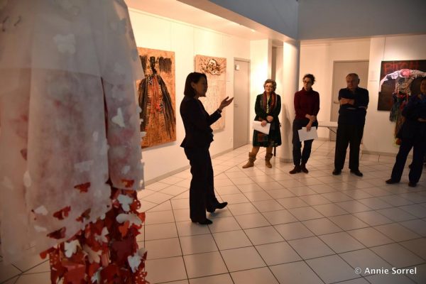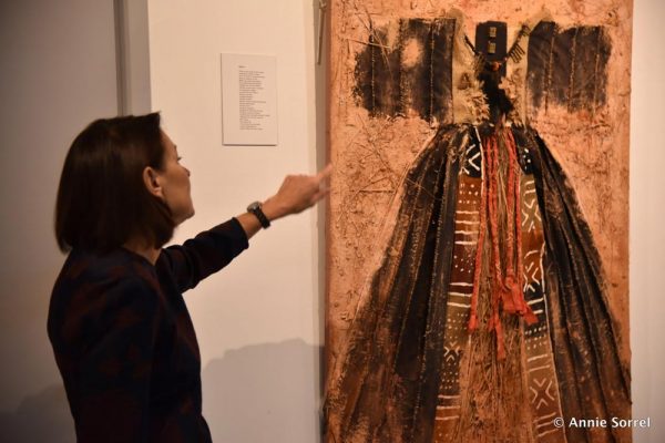 « Cette installation est née d’un souvenir traumatisant de mon adolescence, une agression et un enlèvement par un homme armé et déterminé. J’ai eu la chance inouïe de pouvoir m’enfuir avant qu’il ait eu le temps de passer à l’acte et pendant des années je me suis posée ces deux questions : quel acte ? et pourquoi moi ? Ensuite, en écoutant les témoignages des femmes qui n’ont pas eu la chance d’échapper à un sort épouvantable, vint la troisième question : pourquoi elles ? Uniquement parce qu’elles sont nées filles. C’est la prise de conscience de cette injustice qui m’a poussée à aborder ce sujet douloureux. Par ce long travail de recueil de témoignages des femmes rencontrées dans plusieurs pays, de lectures de rapports d’enquêtes, j’ai voulu, non seulement témoigner et dénoncer, mais aussi rendre hommage à toutes les femmes violentées dans le monde. Je voudrais qu’elles ne soient plus considérées comme des victimes, mais comme des héroïnes, leur résistance créant leur liberté. J’ai choisi la robe comme symbole de la féminité et parce que l’esthétisme permet d’affronter la violence sans avoir à détourner le regard. Chacune d’elles porte le prénom d’une femme et donne des indices sur sa vie, de même que le texte poétique qui l’accompagne. »