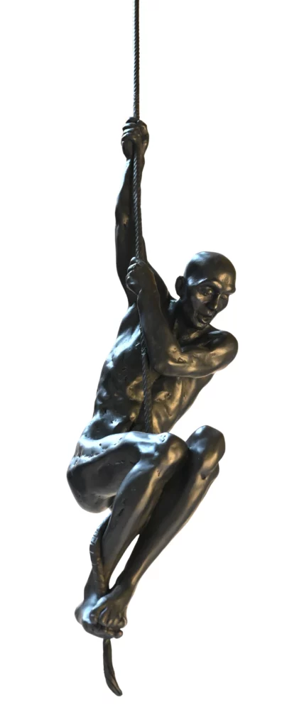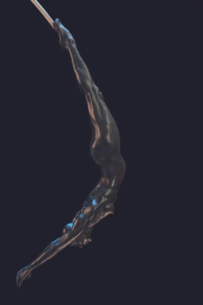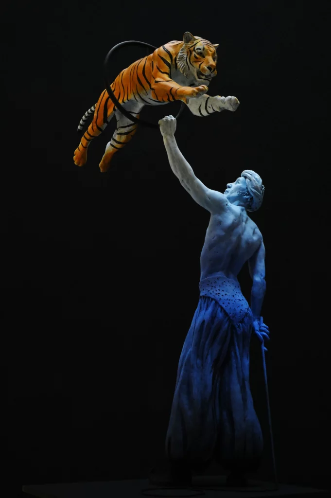 Instinctivement, par compassion ou mimétisme, nous nous identifions à une forme humaine, nous vivons son attitude, l’émotion qu’elle dégage. Si je devais caractériser mon travail en quelques mots, je dirais que je suis un sculpteur figuratif contemporain et que je suis avant tout attirée par le mouvement. L’aspect contemporain est mis en relief par les mises en scène : décomposition du mouvement d’une symphonie, corps suspendu dans l’espace, ou par le choix des émotions : sdf sous sa couverture, femme fauve sur un tabouret… J’ai horreur du corps objet, je cherche l’intensité et l’émotion sans étalage de la chair, même si je représente parfois l’individu dans sa nudité. Je travaille beaucoup la géométrie des attitudes avant d’attaquer une pièce. J’analyse les lignes de forces, les convergences d’énergie. J’attache également une attention particulière au langage des mains et du visage. J’aime créer un échange de regard entre le spectateur et mon personnage.