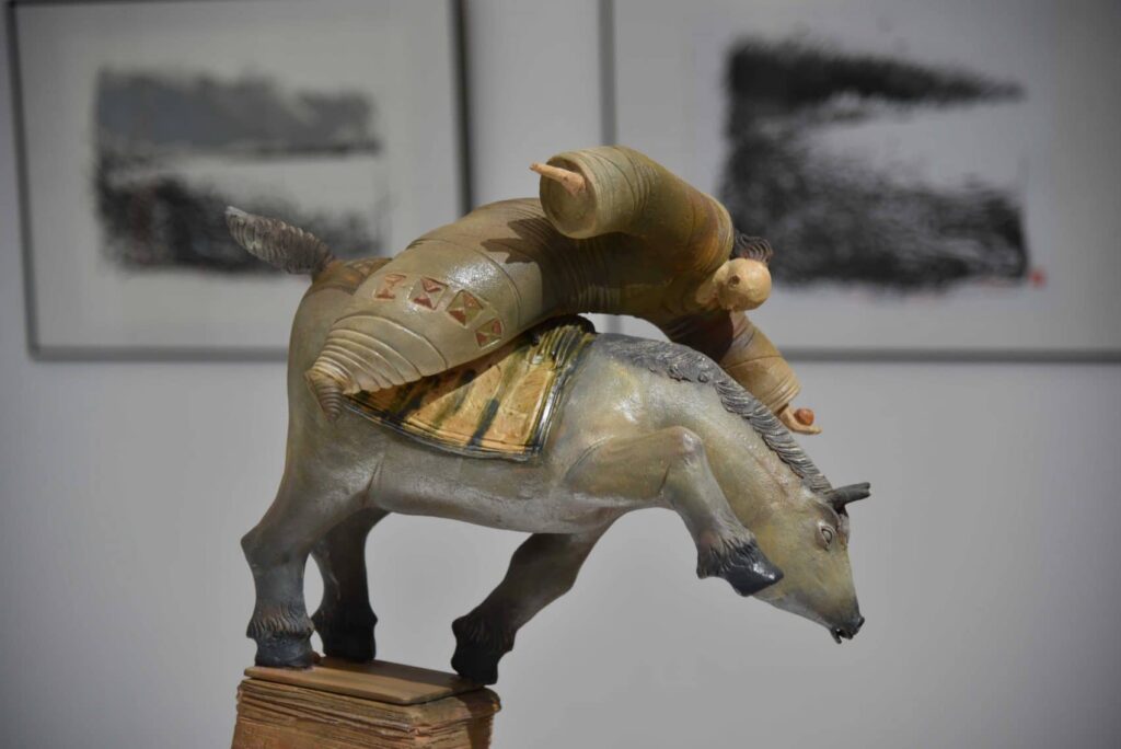 Dessinateur, sculpteur, voyageur, photographe, Dany Jung jette en vrac les bruits du monde dans son œuvre, bruits rêvés, feutrés ou assourdissants. De la chute à l’envol, il cultive le goût du déséquilibre dans une création polyphonique dessinée et sculptée, qui réunirait un monde imaginaire peuplé d’humains et d’animaux toujours en mouvement, sorte de représentation circassienne et pourtant immobile.