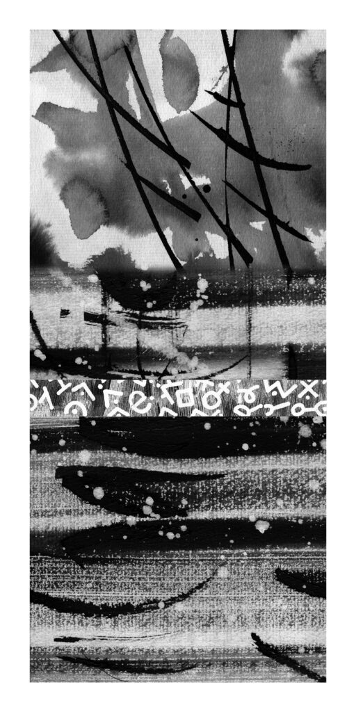 Anne aime manipuler, inventer et s’exprimer dans la diversité des techniques et matières. Après des études aux Beaux Arts et un long chemin d’enseignante, elle crée des affiches pour des spectacles et pour le festival du cinéma espagnol de Valence. Peintre, elle privilégie l’abstraction, source de liberté gestuelle. Céramiste, elle réalise des personnages en grès. Elle utilise le collage, la gravure expérimentale et fabrique des livres d’artistes, leporello et carnets à la japonaise. Elle présente ici de grands Kakémonos issus de la culture japonaise, qu’elle apprécie tout particulièrement. « Les écritures primitives activent mon imagination et sont pour moi une source intarissable d’inspiration ; je mêle encres et signes primitifs dans une danse graphique. »