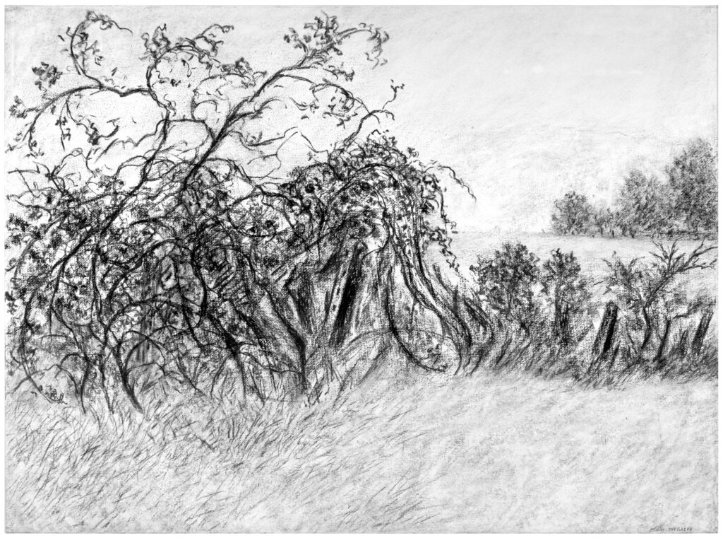 Jacky aime la finesse graphique du dessin au crayon ou au fusain, où la minutie du détail concourt à une simplicité épurée de l’ensemble. Sa démarche part du dessin d’observation qui lui permet d’être « en prise directe avec le sujet », qui pour lui est la nature. « Ce dessin au fusain, graphite, plume ou crayon pastel, peut rester à ce stade ou évoluer à l’atelier en une œuvre plus poussée tout en essayant de garder l’émotion initiale.»
